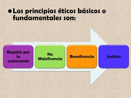 Los llamados principios éticos pueden ser vistos como los criterios de decisión fundamentales que los miembros de una comunidad científica o profesional han de considerar en sus deliberaciones sobre lo que sí o no se debe hacer en cada una de las situaciones que enfrenta en su quehacer profesional. La tendencia internacional actual es reducir los principios, razón por la cual, y en aras de hacer un documento práctico, se ha limitado esta guía a cinco principios éticos: Beneficencia, No Maleficencia, Justicia,Autonomía e Integridad.